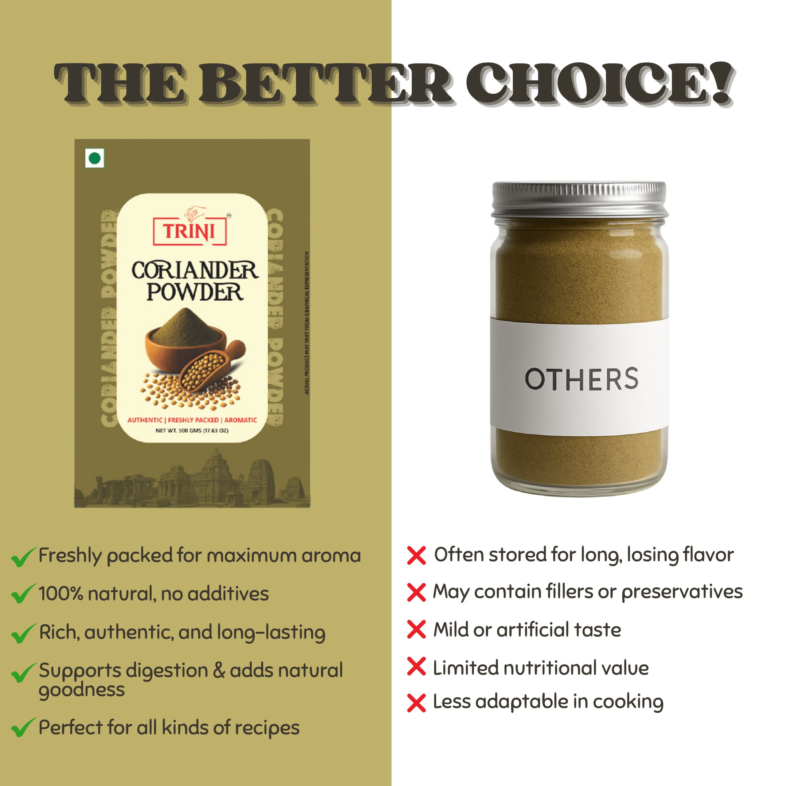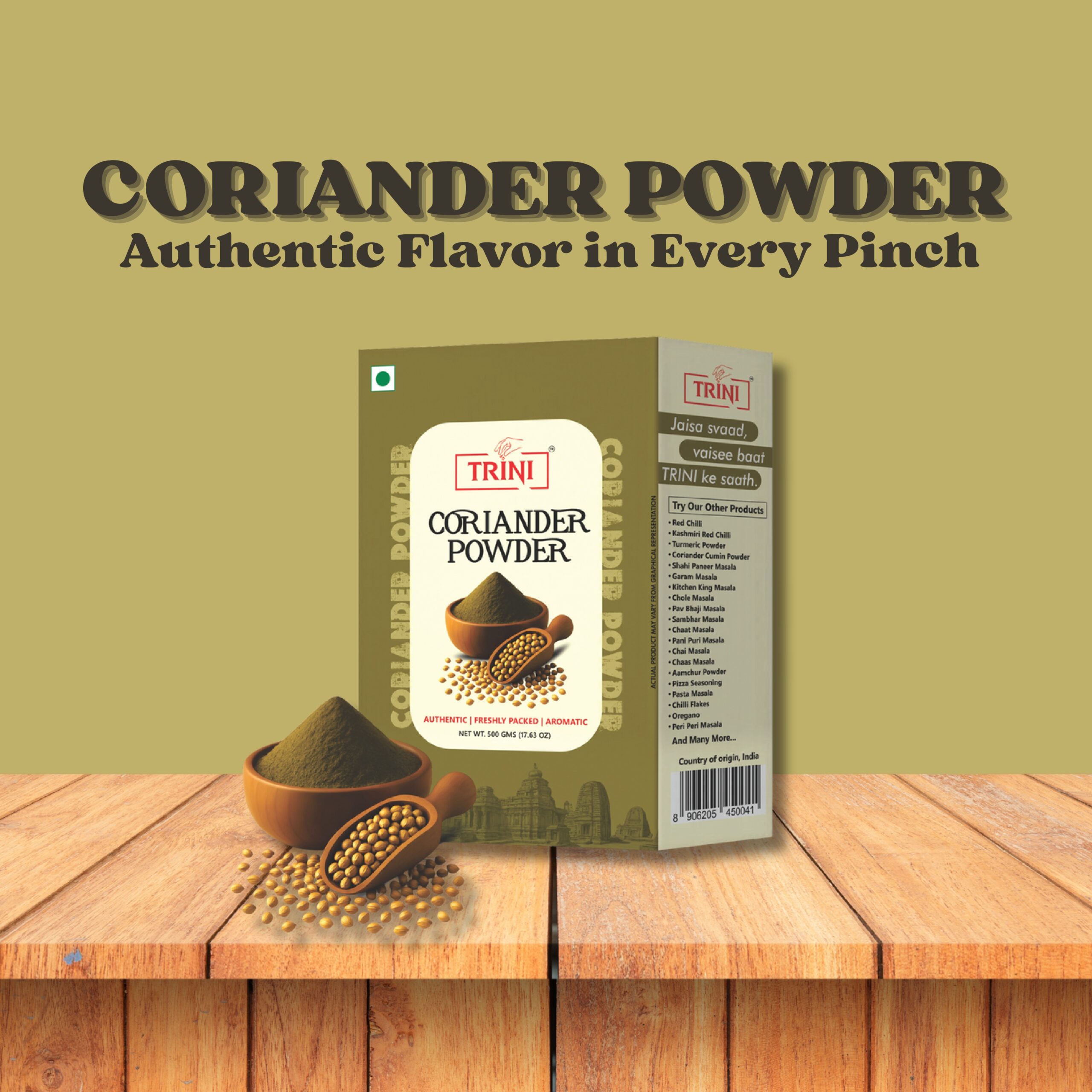 Every pack of Trini Coriander Powder reflects our commitment to freshness, authenticity, and the timeless flavours of Indian kitchens.